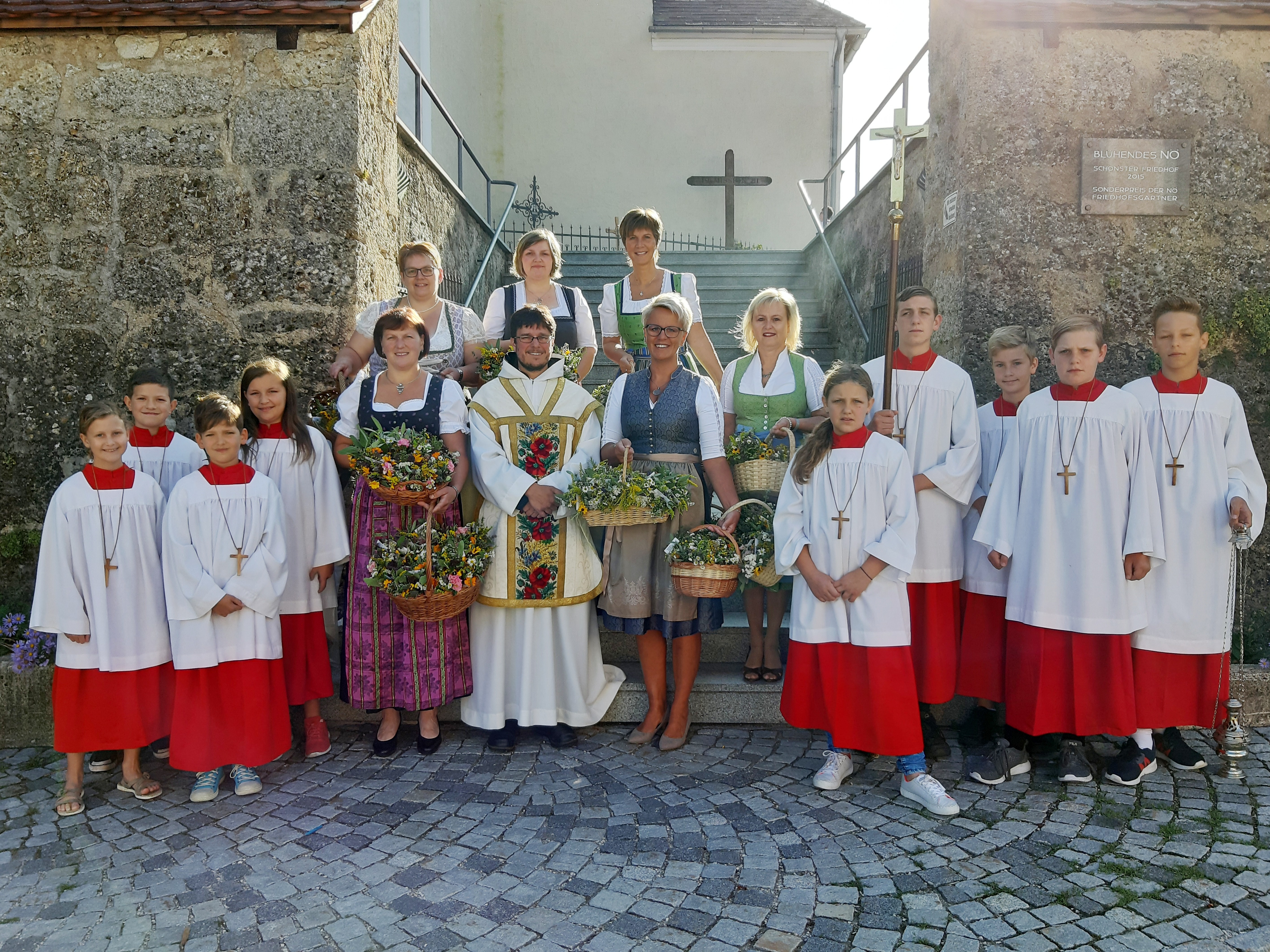 Gottesdienst gestaltet von Frauentrio, mit Segnung Kräutersträußerl von Bäuerinnen und Goldhaubengruppe.