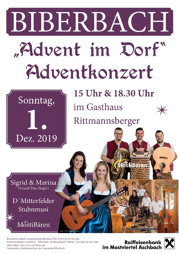 Adventkonzert mit Sigrid und Marina, den Mostibären und der Mitterfelder Stubnmusi